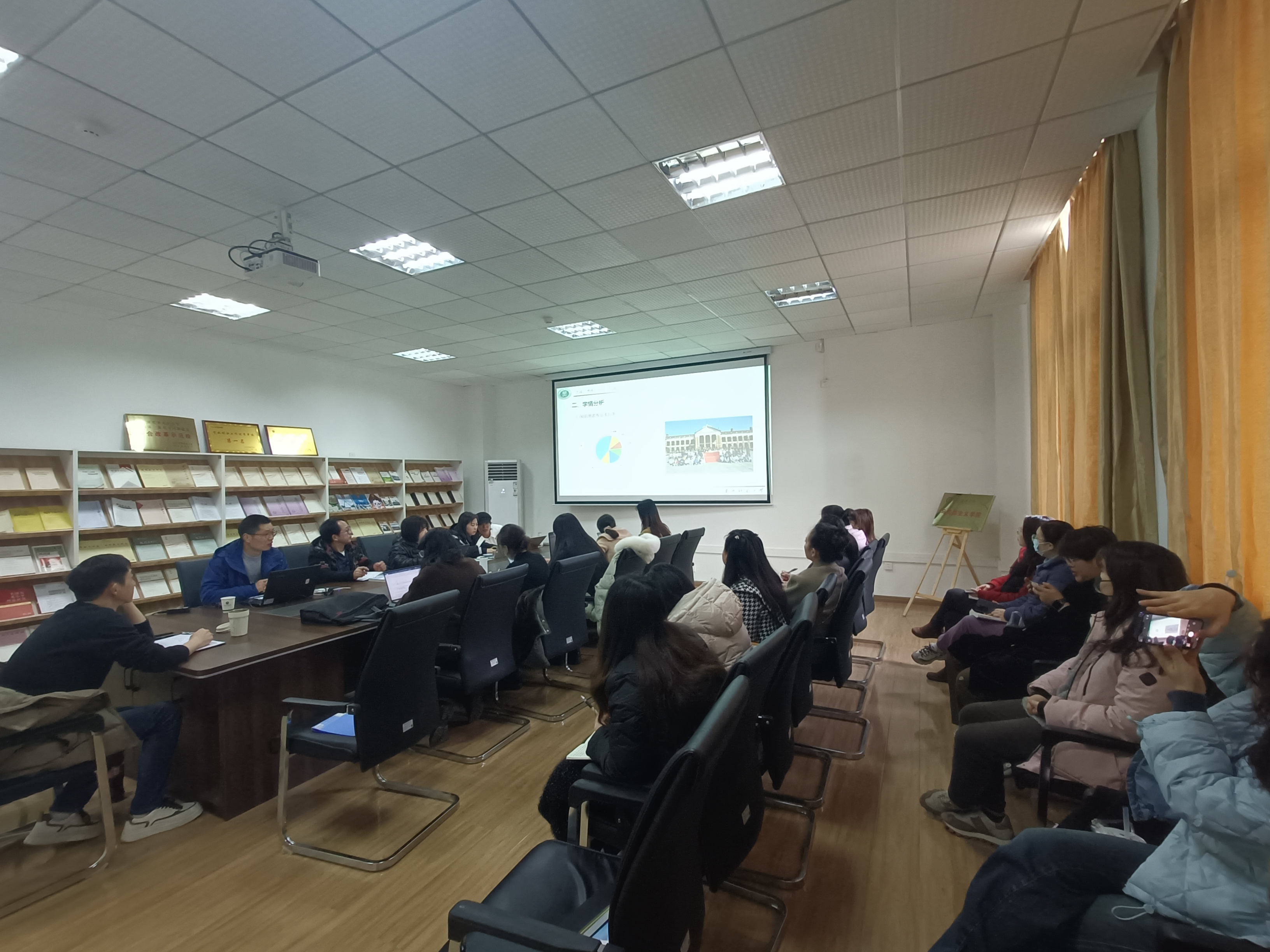 备课会上,邵彦涛老师分析了高校教师思政课教学现状,提出了加强高校思政课教师提升课程质量的路径。如思政课教师提高自我认识、加强课堂管理、发挥学生主体性作用、纲要课程问题链接式的教学设计等。随后,中国近现代史纲要教研室教师就如何精准设计教学内容、华师思政课教学现状及考核方式、时政热点融入思政课等问题与邵老师进行交流探讨。