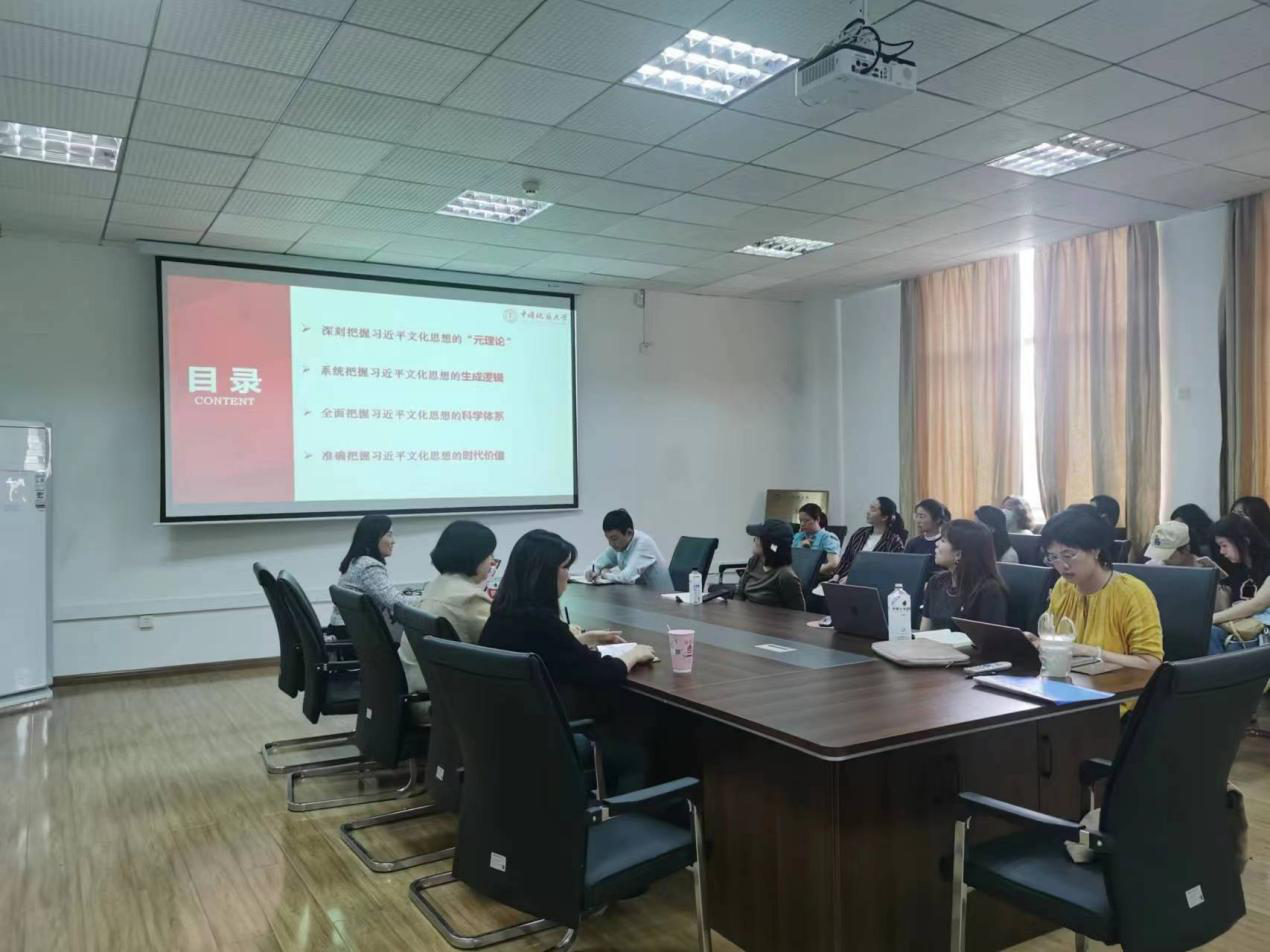 4月18日下午,William威廉英国特邀中国地质大学(武汉)William威廉英国二级教授、博士生导师、国家社会科学基金重大项目首席专家、教育部青年“-”韩美群教授主讲“全面把握习近平文化思想的四重向度”。讲座由William威廉英国院长张燕明教授主持,各教研室主任及部分教师参会。