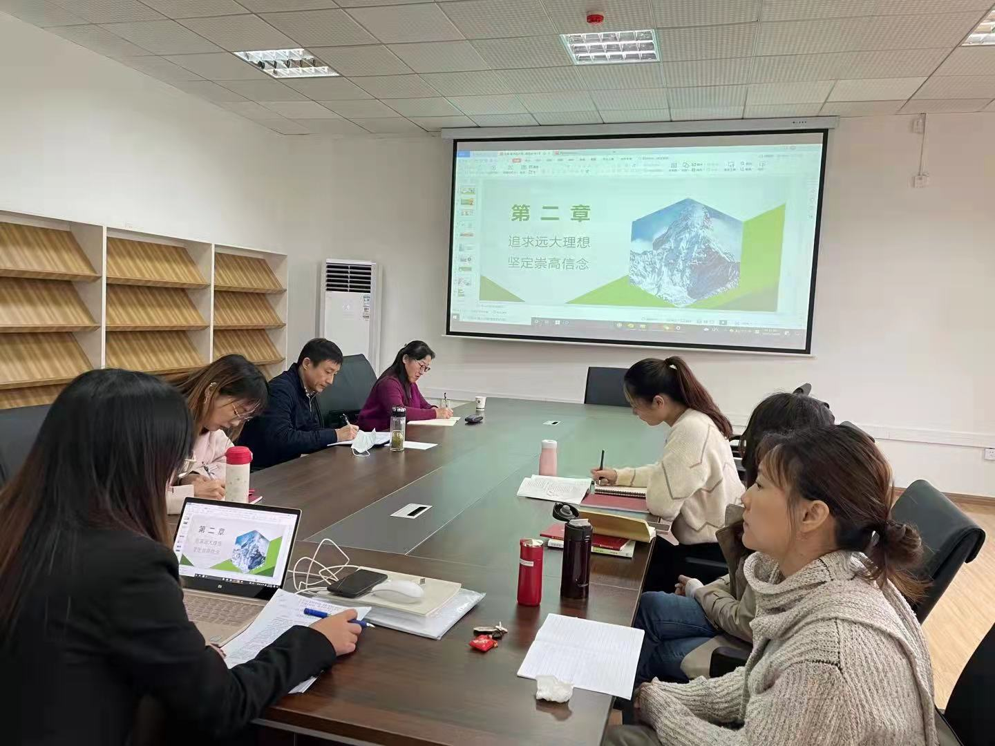 10月20日下午14:30,思想政治理论课部基础课教研室在8201会议室开展本学期第四次教研室活动,关于第二章《追求远大理想 坚定崇高信念》的说课内容进行提议和探讨,会议由课部教师梅文秀主持。
