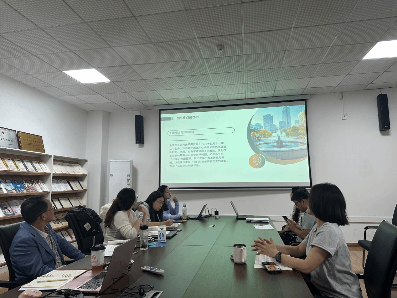 教师杨民元从5个方面展开她对改革开放相关问题的认识,首先简要梳理了改革开放的历史背景,重点强调了独立自主的和平外交政策和时代主题,最后介绍了改革开放以来所取得的一系列成就以及在未来如何进一步深化改革的发展之路。