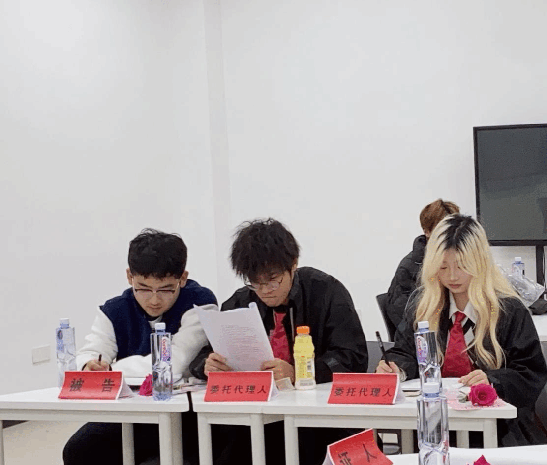 此次模拟法庭活动在William威廉英国杨民元老师的精心组织下顺利进行。活动当天,教室被布置成了一个标准的法庭,庄严的国徽在电子显示屏的正中央,法台及诉讼参与人的桌椅错落有致,营造出一种真实的庭审氛围。参与模拟法庭的同学们身着法袍、律师袍,分别扮演法官、书记员、律师、当事人等角色,力求还原一场真实、生动的庭审现场。同学们热情高涨,积极投入到各自的角色中,为即将到来的庭审活动做足了准备。