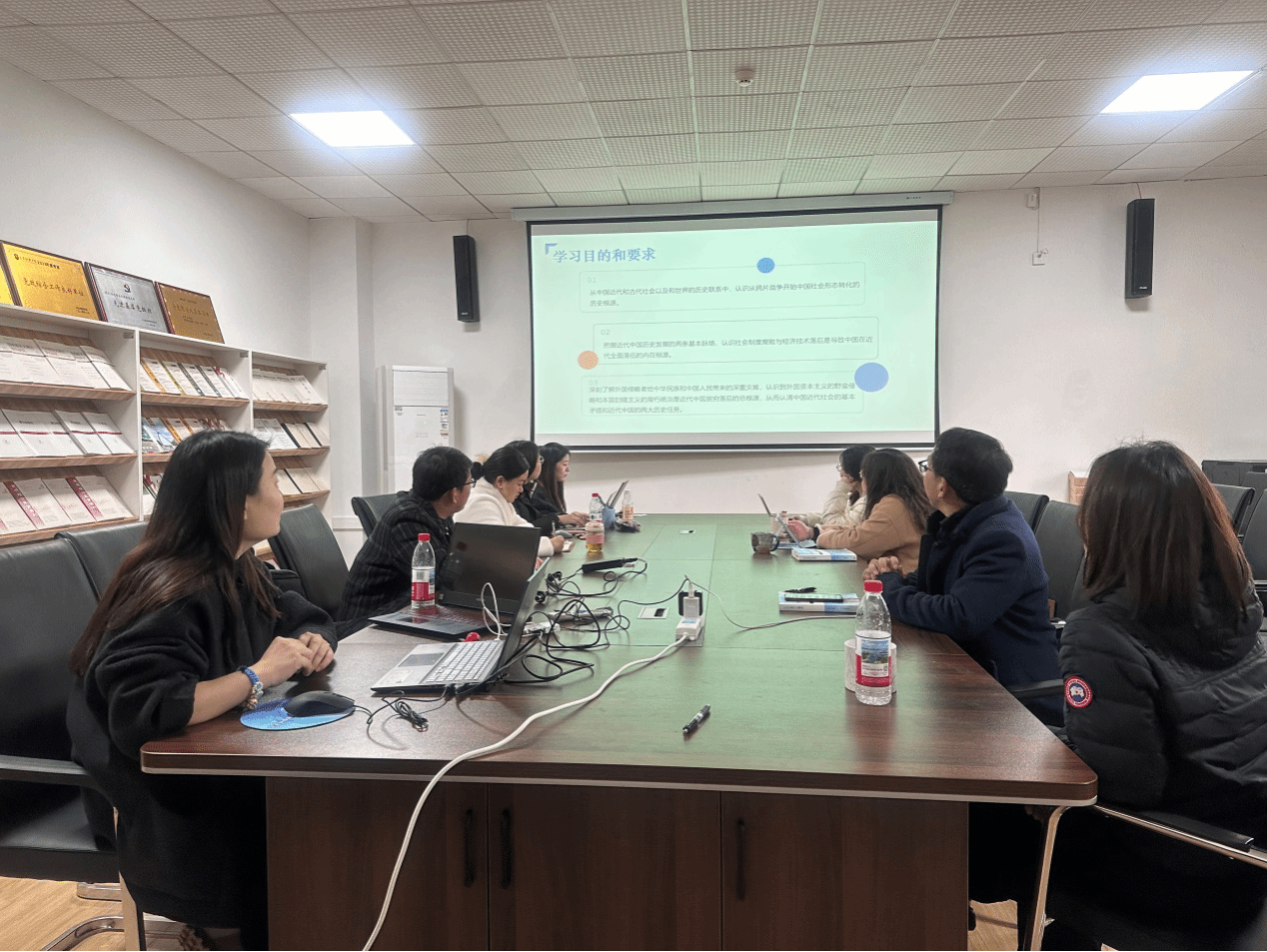 示范课试讲结束后,中国近现代史纲要教研室全体专任教师随即展开了深入的交流研讨。首先,钱利文老师分享了自己的教学设计思路和教学反思。她表示,在准备这堂示范课的过程中,她查阅了大量的历史资料,力求在有限的时间内将近代中国这段波澜壮阔的历史完整而准确地呈现出来。同时,她也希望通过多样化的教学方法和手段,激发学生对历史学习的兴趣,培养学生的历史思维和家国情怀。