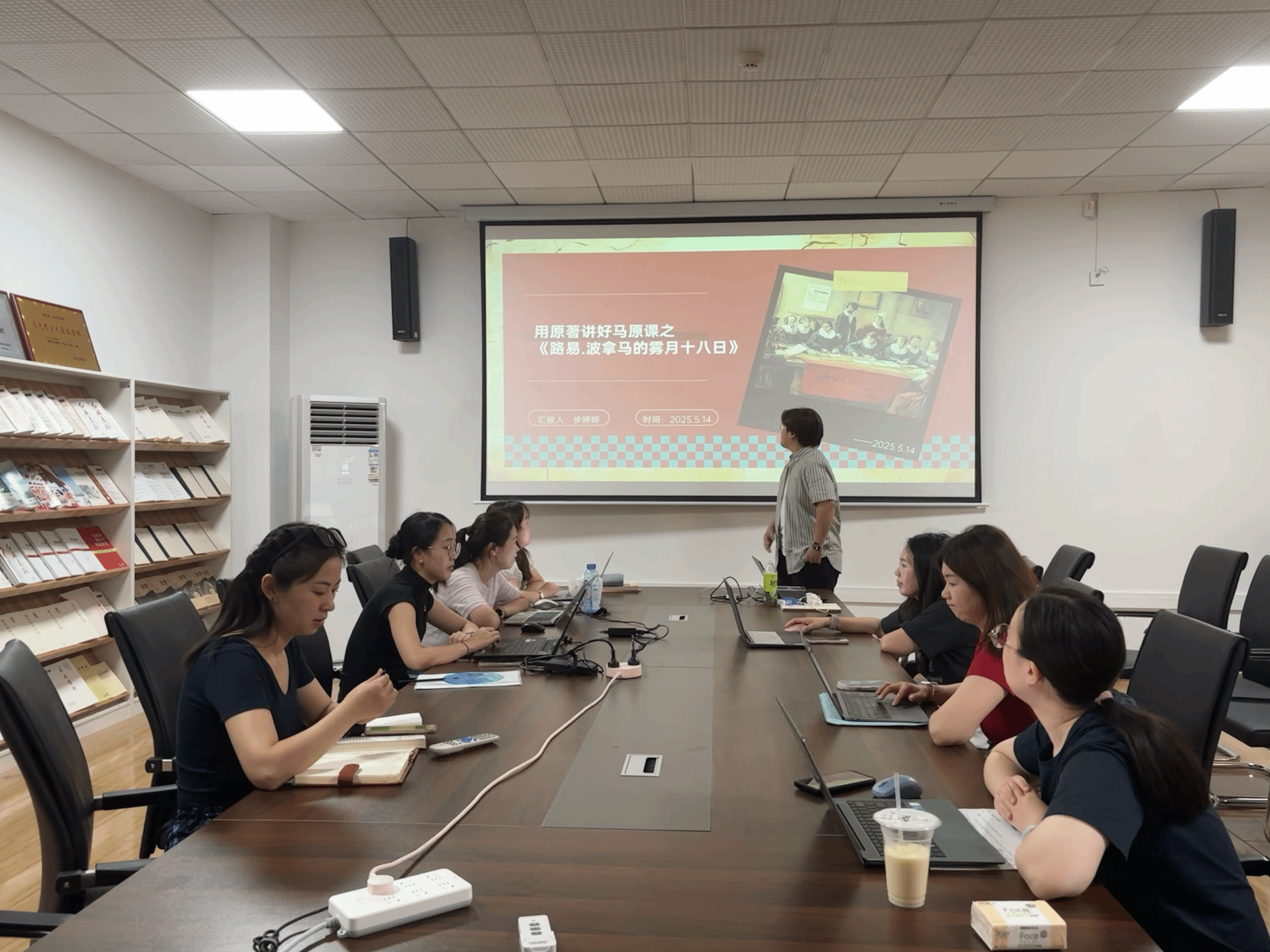 田爱玲主任分享了“原著选段+案例解析”的课堂实践模式,她提出:“只有教师自身吃透原著,才能将马克思主义的真理力量转化为生动的教学语言。”与会教师就原著教学的难点、重点展开讨论,现场气氛热烈。
