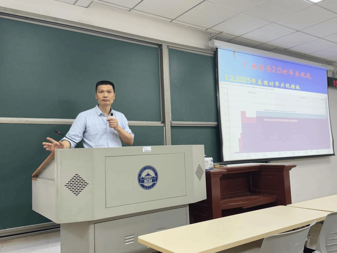 武汉大学政治与公共管理学院阮建平教授作“大国关系与中国应对策略”专题讲座。讲座聚焦百年变局下国际格局演变,系统解析中美战略竞争逻辑及中国应对路径。阮建平教授以“国际力量对比变化”为切入点,指出美国对华关税战、科技封锁等政策是中美实力对比变化下的战略遏制手段,强调中国需以总体国家安全观为引领,维护底线原则,统筹发展和安全。