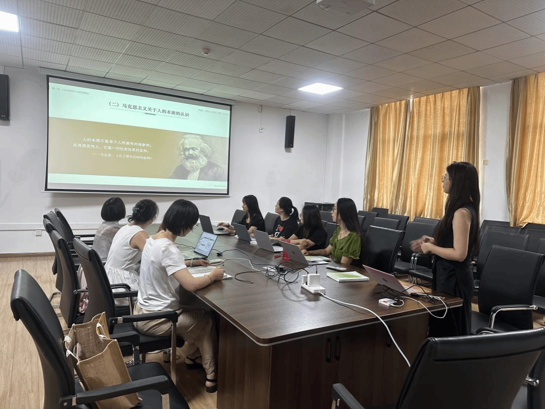 2025年9月8日下午,思想道德与法治教研室全体教师在8201会议室开展专题二备课会及优课计划展示。会议由张祥贝教师主持。本次会议主题为“探索专题二教学教法新思路”,重点在于全体教研室教师研读分享《习近平的七年知青岁月》、《洛克菲勒写给儿子的38封信》,深挖两本书的思政价值,并将其融入专题二的教学内容,革新教学教法,提升教学实效。