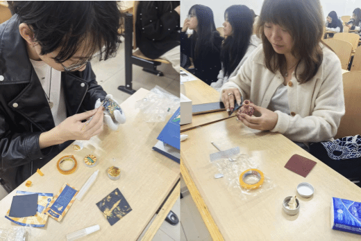 课程不仅讲授文物历史与流失文物回归的故事,更创新引入沉浸式实践教学,设置了文物修复实践环节。祝庆老师组织学生分组化身 “文物修复师 ”,参与体验瓷器修复工作。通过拼对、粘接补缺、打磨上色等实操环节,让学生在指尖触碰瓷器碎片的过程中,体验匠心修复的艰辛与乐趣。每一件文物都是历史的见证,每一次修复都是与历史的对话。学生们在亲手拼接 “ 时光的印记 ”、让破碎文物重获新生的过程中,不仅直观感受中华优秀传统文化的博大精深,更深刻体会流失文物回归背后的国家力量与民族精神。通过这一次修复体验课,激发了学生守护文化遗产、传承文明根脉的责任感与使命感,让文化自信的种子在实践中生根发芽。