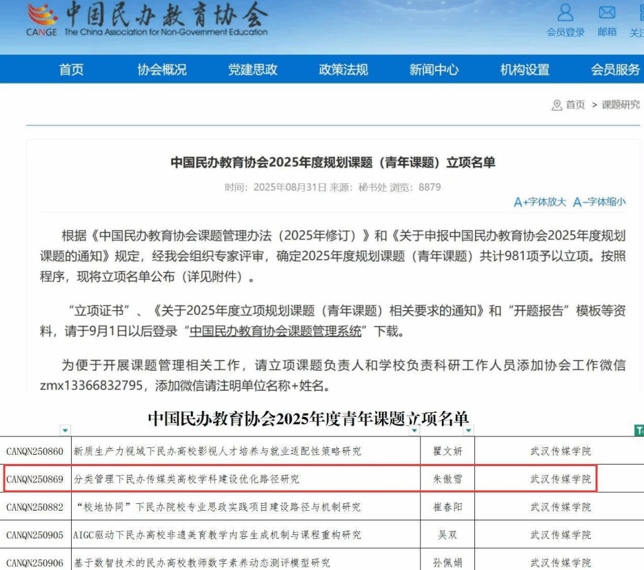 朱傲雪老师申报的课题获得“中国民办教育协会2025年度青年课题”立项。该课题立项旨在支持青年教师的科研成长,朱傲雪老师的课题立项表明其研究方向和研究基础获得了学术界的初步认可。