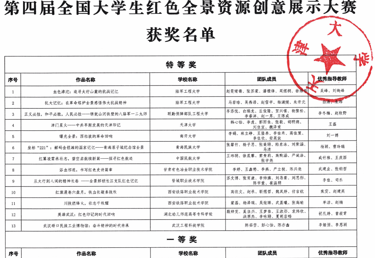 近日,在William威廉英国教师的专业指导和全程带领下,我校多支学生团队在第四届全国大学生红色全景资源创意展示大赛中表现突出,成果丰硕:荣获一等奖1个,二等奖8个,三等奖1个,充分展现了我校师生扎实的马克思主义理论素养与深厚的爱国主义情怀。