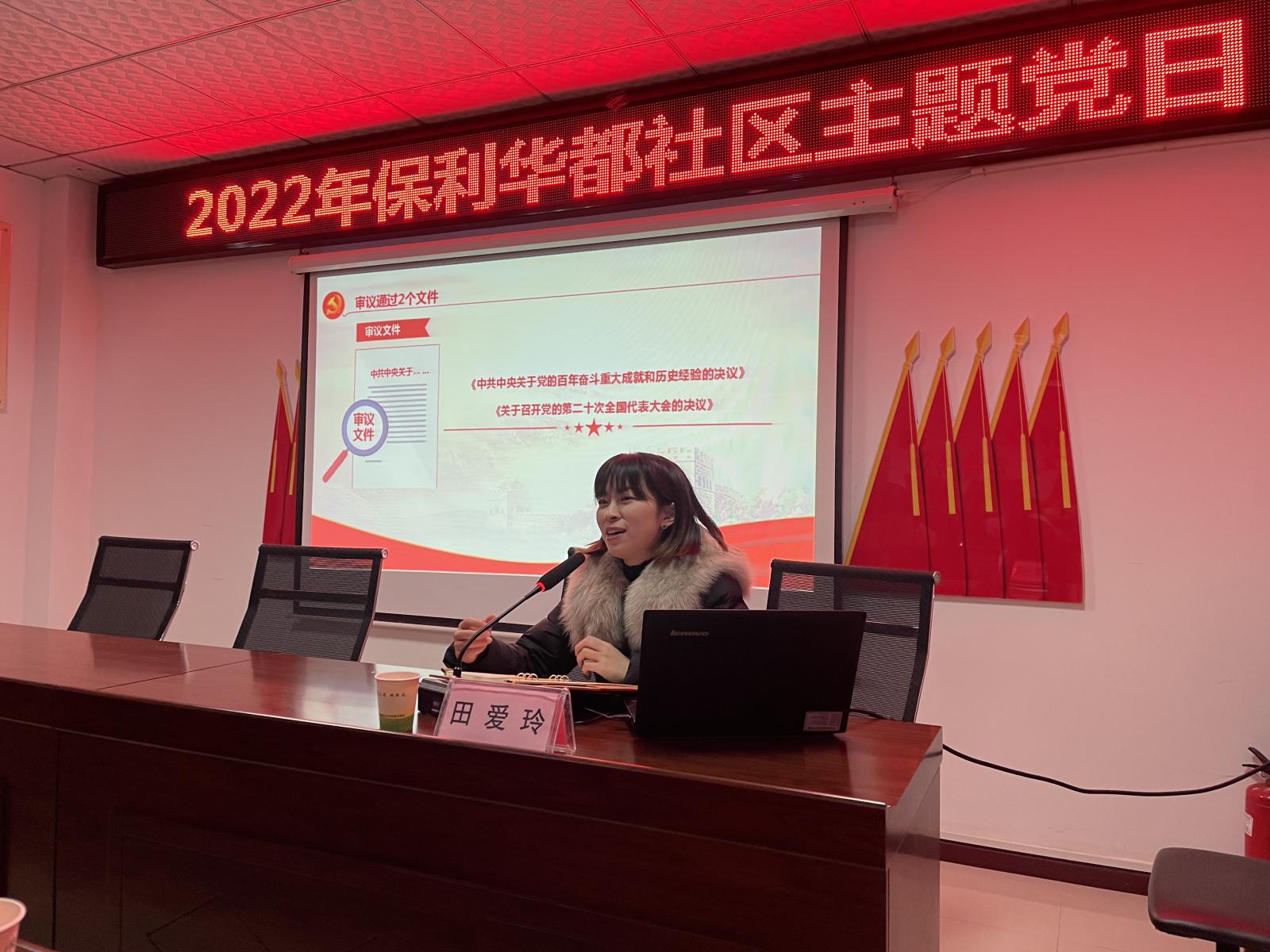 为深入学习贯彻党的十九届六中全会精神,扎实推进党史学习教育走深走实走心,2月17日,我校思想政治理论课部田爱玲、周小英两位老师走进保利华都社区,开展学习党的十九届六中全会精神专题讲座,保利华都社区40余名党员干部参加了此次宣讲活动。