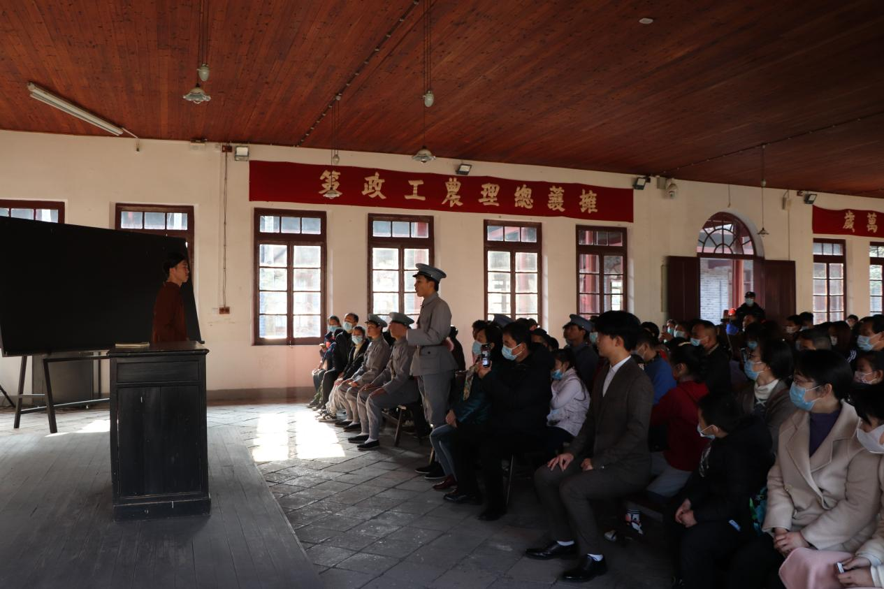 翻开历史篇章,拂去岁月风尘,那浸满鲜血的道路依旧醒目。为培养广大学生的历史文化认同感,感同身受的接受红色历史教育,williamhill威廉希尔的师生精心组织开展了一场别开生面的“情景剧党课”-《都府堤41号》、农讲所《历史的回望》。通过情景的创造和演绎,以肢体、语言、合唱结合的方式,沿着青年毛泽东、杨开慧、陈玉英等奋斗的足迹,回眸那风云激荡的峥嵘岁月。在中央农民运动讲习所,通过观看学生们的生动表演,再现了第一次国共合作时期毛主席创办的培养全国农民运动的干部学校,学生在毕业之后奔赴农村,如革命火种一般播撒神州,积极投身革命洪流之中,谱写了中国革命史、农运史、教育史的光辉篇章。党的革命先辈们为了解放全中国而前赴后继,英勇奋斗的精神深深激励着大家,一首《国际歌》更是让在场的人心潮澎湃,如临其境,久久不肯离去。