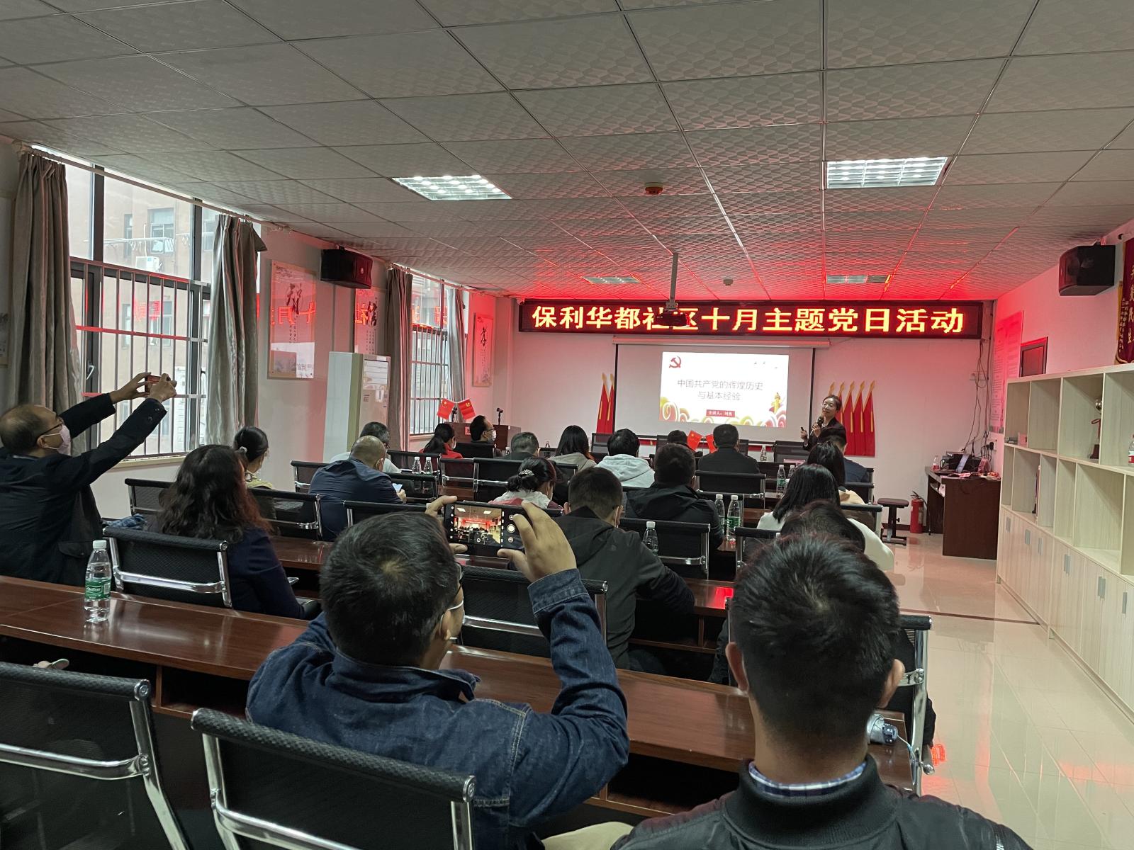 为深入学习贯彻习近平总书记在党史学习教育动员大会上的重要讲话精神和“七一”重要讲话精神,扎实推进党史学习教育走深走实走心,10月17日,我校思想政治理论课部刘燕、周小英两位老师走进保利华都社区,开展党史专题讲座。保利华都社区40余名党员干部参加了此次党史宣讲活动。