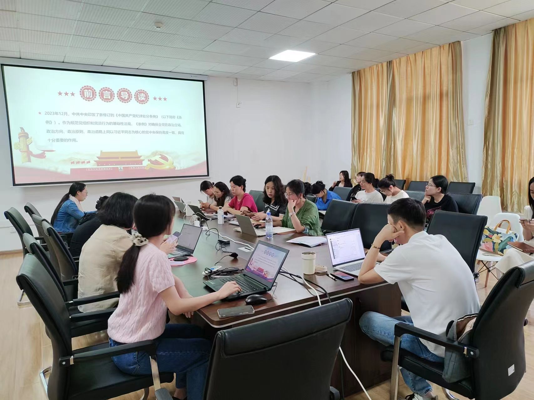 2024年5月23日下午15:00学院党支部在8201举行5月主题党日活动,围绕“学纪固本、知纪正行、明纪修身、守纪养德”进行。活动由李玉林书记主持,全体党员参会。流程如下:
