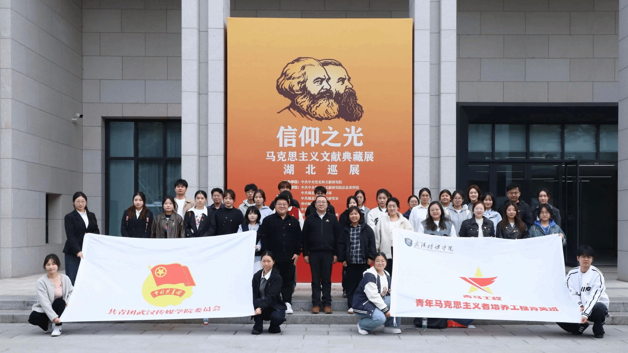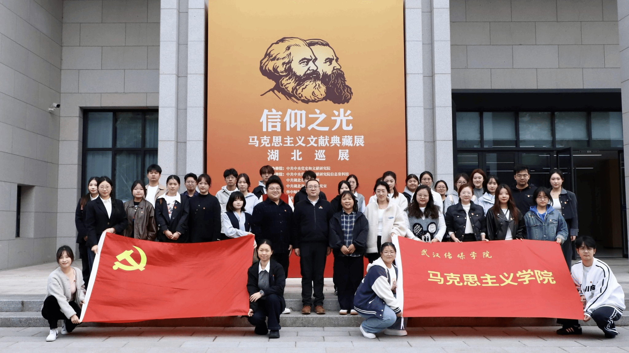 为深化 “青马工程” 育人实效,推动马克思主义理论教育与实践育人深度融合,2025 年 11 月 11 日下午,William威廉英国协同校团委组织 “青马工程” 菁英班学员及学生骨干代表 ,赴华中师范大学参观 “信仰之光 —— 马克思主义文献典藏展” 湖北巡展。实践活动由党委组织部部长李奉天老师、校团委副书记蒋璐璐老师、校团委华震东老师带队。马院祝庆、杨竹茹、王文瑶三位老师全程参与,以理论讲解、现场解读、专题研讨相结合的方式,为青年学子打造了一堂沉浸式、立体化的 “行走的思政课”。