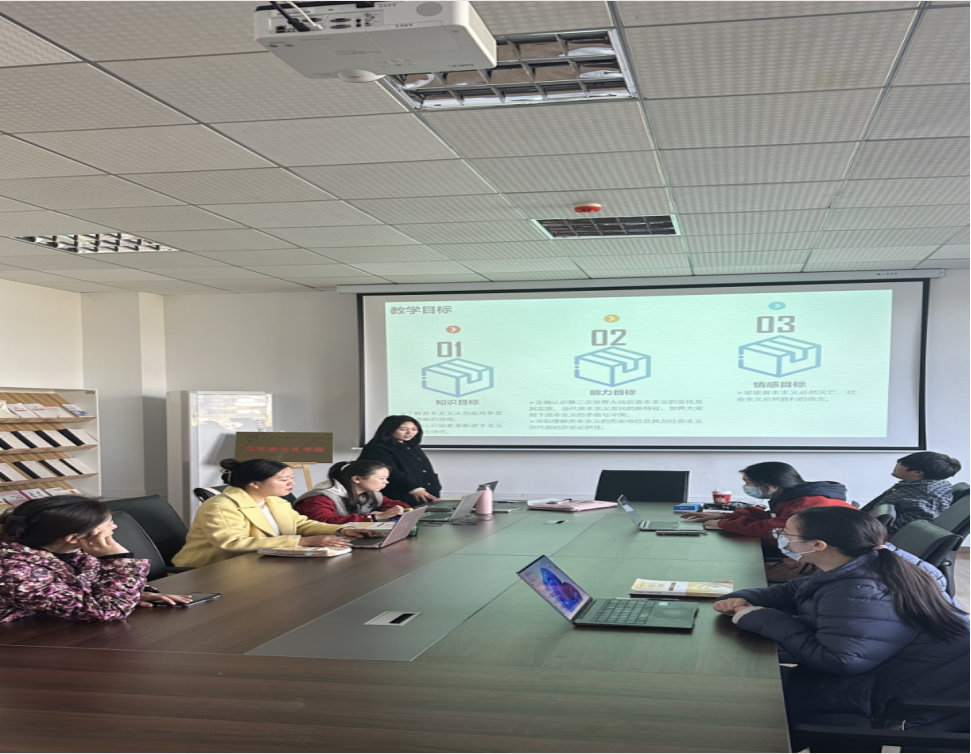 备课会上,龚萍老师以说课方式分享了第五章资本主义的发展及其规律的授课基本思路与教学案例,在说课过程中对“正确认识第二次世界大战后资本主义的变化及其实质,当代资本主义变化的新特征”这些知识点进行了重点的介绍与梳理。教学分享环节结束后,参会老师围绕教学中的难点、困惑等诸多问题展开深入探讨。“原理”教研室主任田爱玲老师强调了本章教学中应注意的地方,并提醒老师们要根据授课专业,针对性地形成个性化教学设计,为接下来的评估工作做好准备,做到以评促建、以评促教。