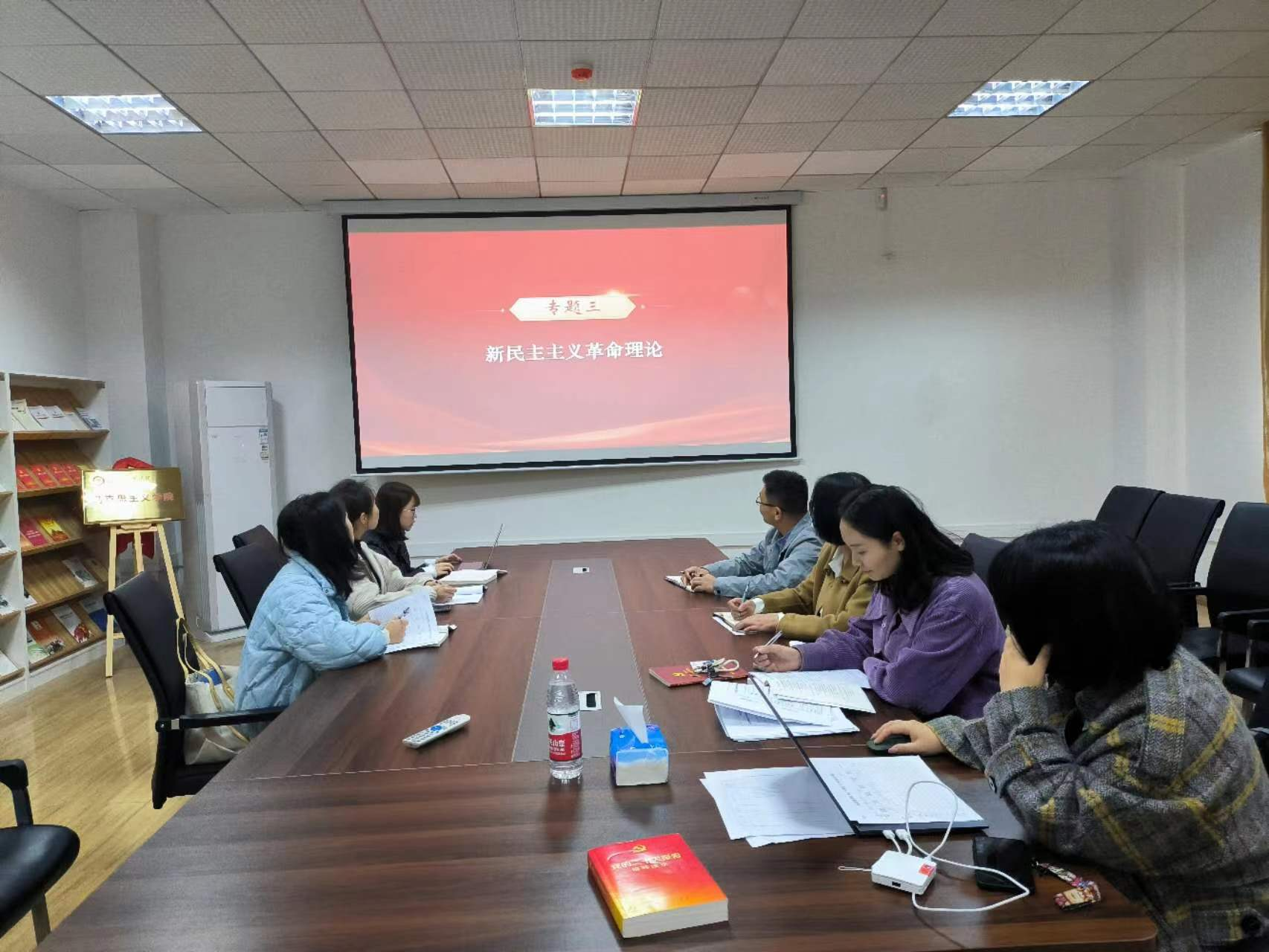 “水本无华,相荡而成涟漪;石本无火,相击而发灵光”。为更好的加强老师之间的学习交流,提高教学水平,“概论”教研室于3月16日下午在8201会议室开展本学期第三次教研室活动,本次备课会主要围绕专题三“新民主主义革命理论”和专题四“社会主义改造理论”的教学设计进行探讨。