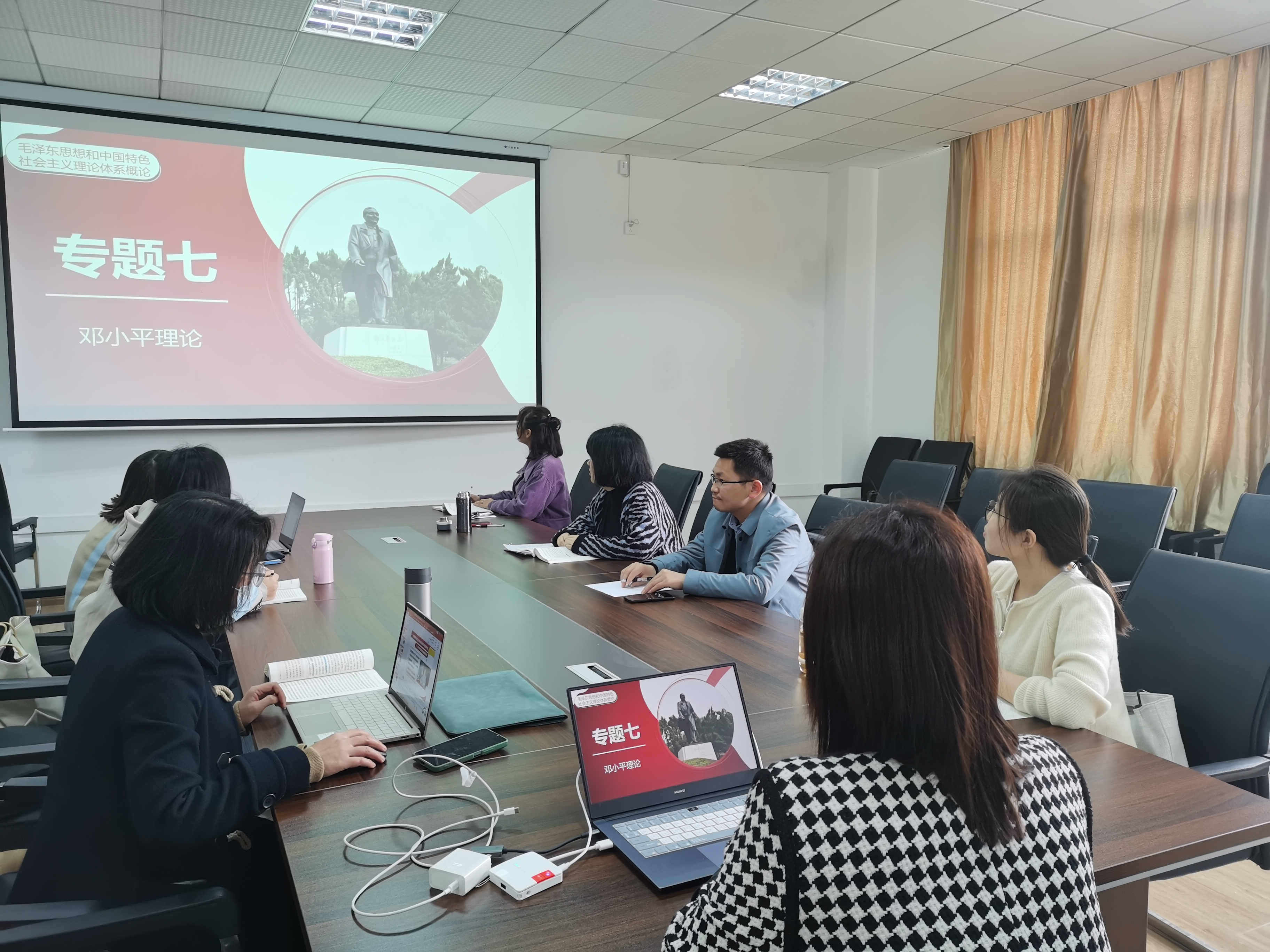 为进一步提高教师授课质量,切实把《毛泽东思想和中国特色社会主义理论体系概论》教材体系转化为教学体系,加强新时代高校思想政治理论课建设,4月6日下午,概论教研室全体教师在8201会议室举行本学期第七次集体备课会,本次备课会由沈慧老师主讲。
