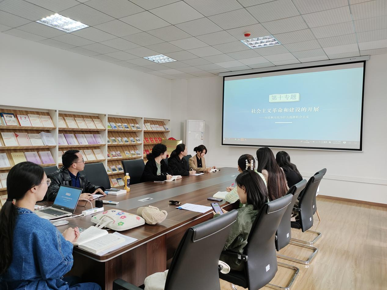 2023年4月27日13:30,纲要课教研室在8201召开了本学期第十次教研活动。本次教研会主要围绕专题十《社会主义革命和建设的开展》内容进行说课和探讨,会议由姚欣汝老师主持。老师们围绕专题十的教学重点、难点、弱点、易错点、易混点等展开了讨论,注重帮助学生掌握重难点,分辨易混点和易错点。