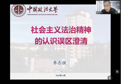 李志强教授以《社会主义法治精神的认识误区澄清》为主题,通过二十大报告中社会主义法治精神论述作为切入点,借助真实生动的案例,针对两大部分26个问题进行解析。第一部分中,李教授就社会主义法治精神被提出的历程、社会主义法治精神自身演绎的逻辑、社会主义法治精神外延的广泛性、社会主义法治精神内涵的层次性、社会主义法治精神的主要内容向参会各位教师进行了详细讲解。第二部分,李教授根据多年的教学经验,以扎实的理论功底、严密的授课逻辑和生动形象的案例就“法和法律是一回事吗?”、“法律只有惩恶的功能吗?”“爱国主义只是道德规范吗?”“法律只是底线的道德?”、“法律只有工具性,而不能成为信仰?”、“法治精神是终极价值吗?”等20个问题进行一一解读。会议结束后,李教授与教师们进行了深入交流,耐心解答了教师们提出的相关问题。