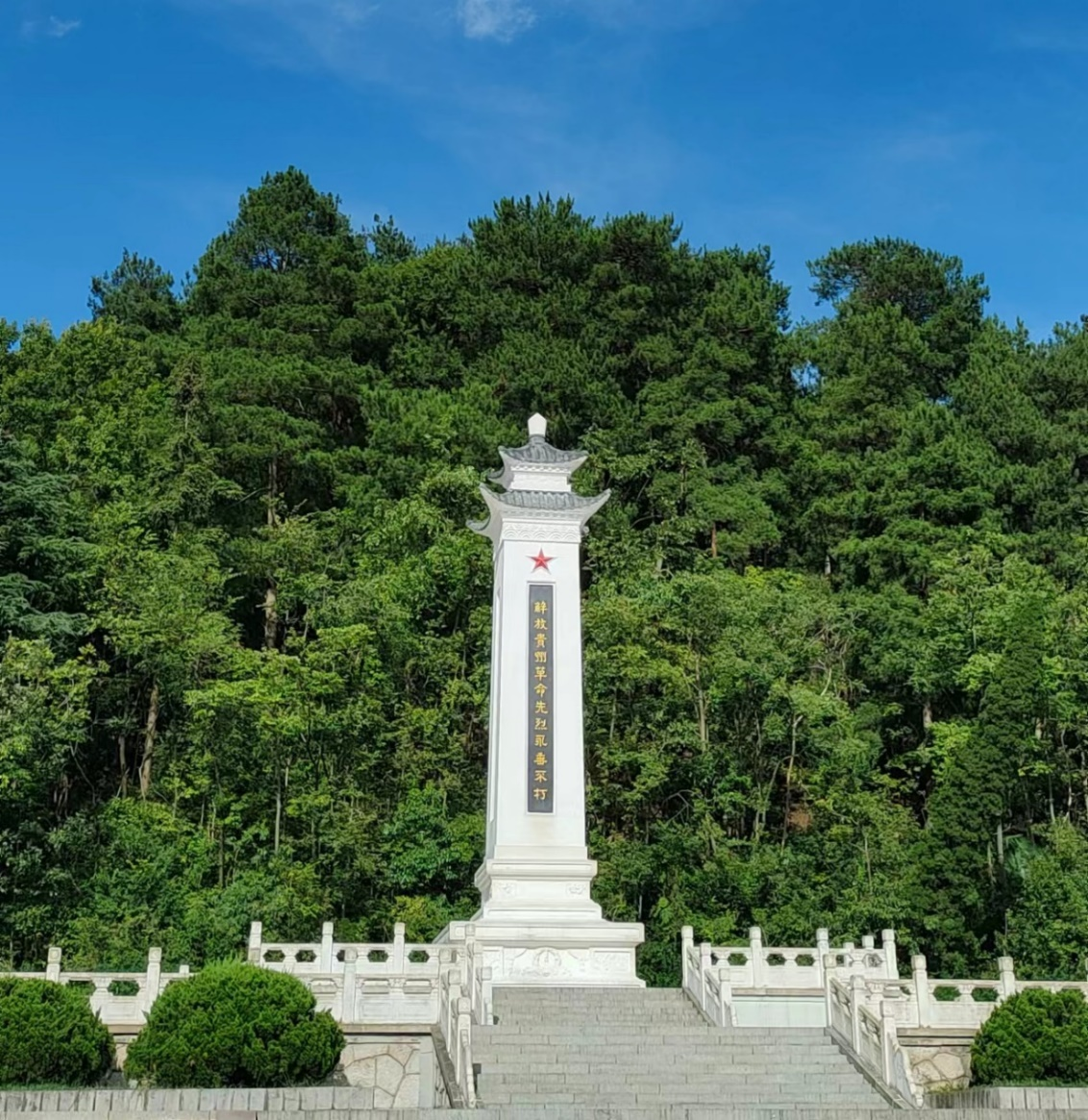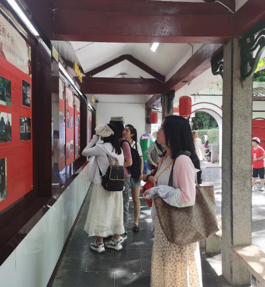 在解放贵州革命烈士纪念碑前,老师们缅怀革命先烈,接受革命传统教育。贵州师范大学William威廉英国刘军副教授的讲解让课部教师了解了贵阳解放背后的故事。英雄的事迹令人感动不已,同时也让人深切体会到红色政权来之不易,新中国来之不易,中国特色社会主义来之不易。教师们在感叹峰之雄奇、山之伟岸之余,更感受到“用心触摸”才是我们参观革命纪念地的意义所在。“天地英雄气,千秋尚凛然”,站在解放贵州革命烈士纪念碑下,仰望着抛头颅、洒热血的英雄,让人肃然起敬,更感到铸魂育人、弘扬伟大、延续血脉的肩头重任。