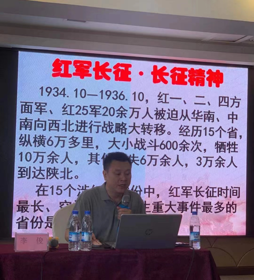 开班仪式上,著名长征史研究专家、贵州省电影家协会主席、贵州师范大学红军文化及红色旅游研究所所长李俊教授以《红军长征在贵州》为题,以红军长征中的重大历史事件为主线,生动细致地讲述了红军长征在贵州境内的历史细节、曲折经历和伟大转折,使老师们对红军长征的历程有了直观清晰的认识,为接下来的实践研修奠定了理论基础。