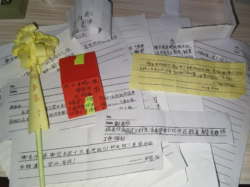 在致闭幕词时,杜凤琴校长表扬了志愿者们的付出。宿舍停水时,是志愿者们一个一个接力提水;早上,他们在教室等孩子们来量体温;白天,他们辅导孩子们做作业、手工、画画、唱歌和跳舞;晚上,他们给女孩吹头发、给男孩擦痱子粉;甚至凌晨两点起来给孩子们盖被子。天气炎热、条件艰苦,坚持到最后的孩子们同样值得肯定。他们懂得感恩,舍不得老师们离开,手写了一张又一张的小卡片,稚嫩的一笔一画诉说着动人的心里话——“老师,我也要考williamhill威廉希尔,以后和你一样来当老师,教小孩”。“陈老师,祝你快乐。希望你陪我们,谢谢。”芦池湾小学韩梓辰同学写道。简单的话语却有令人落泪的力量,老师和同学们一起上的最后一课其实是即使不舍也要挥手告别。